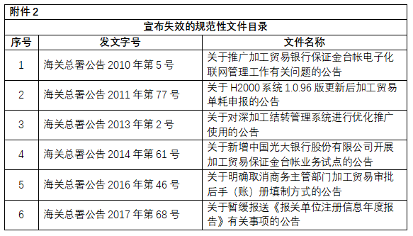 按照工做现实,海关总署决定废止和颁布发表失效部门规范性文件,具体文件目次见附件1、附件2。本通知布告自觉布之日起生效。