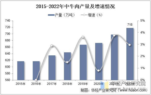 跟着经济的快速增加,居平易近收入程度不竭提高,人们越来越逃求质量高的糊口。而饮食做为糊口中的主要部门,也正在发生着变化。人们起头认识抵家庭饮食健康的环节所正在,仅仅是猪肉产物不再能满脚泛博社会消费者的需要,肉类的选择逐步丰硕多样。低脂肪高卵白的牛肉更是遭到了大大都消费者的青睐,据材料显示,2022年我国牛肉产量为718万吨,同比增加2。9%。
