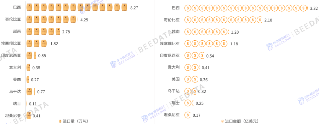 2。 从商业伙伴来看,2024年,中国咖啡进口商业伙伴中,按进口金额排名前三的国度/地域顺次是巴西、哥伦比亚、越南,巴西是中国最大的咖啡进口来历国,中国咖啡进口30%以长进口自巴西;中国咖啡出口商业伙伴中,按出口金额排名前三的国度/地域顺次是荷兰、以及俄罗斯,出口销往这三个地域的咖啡出口量正在全国咖啡出口量中所占的比沉别离为13。16%、13。61%、8。18%,出口金额正在全国咖啡出口金额中所占的比沉别离为14。79%、14。69%、9。06%。